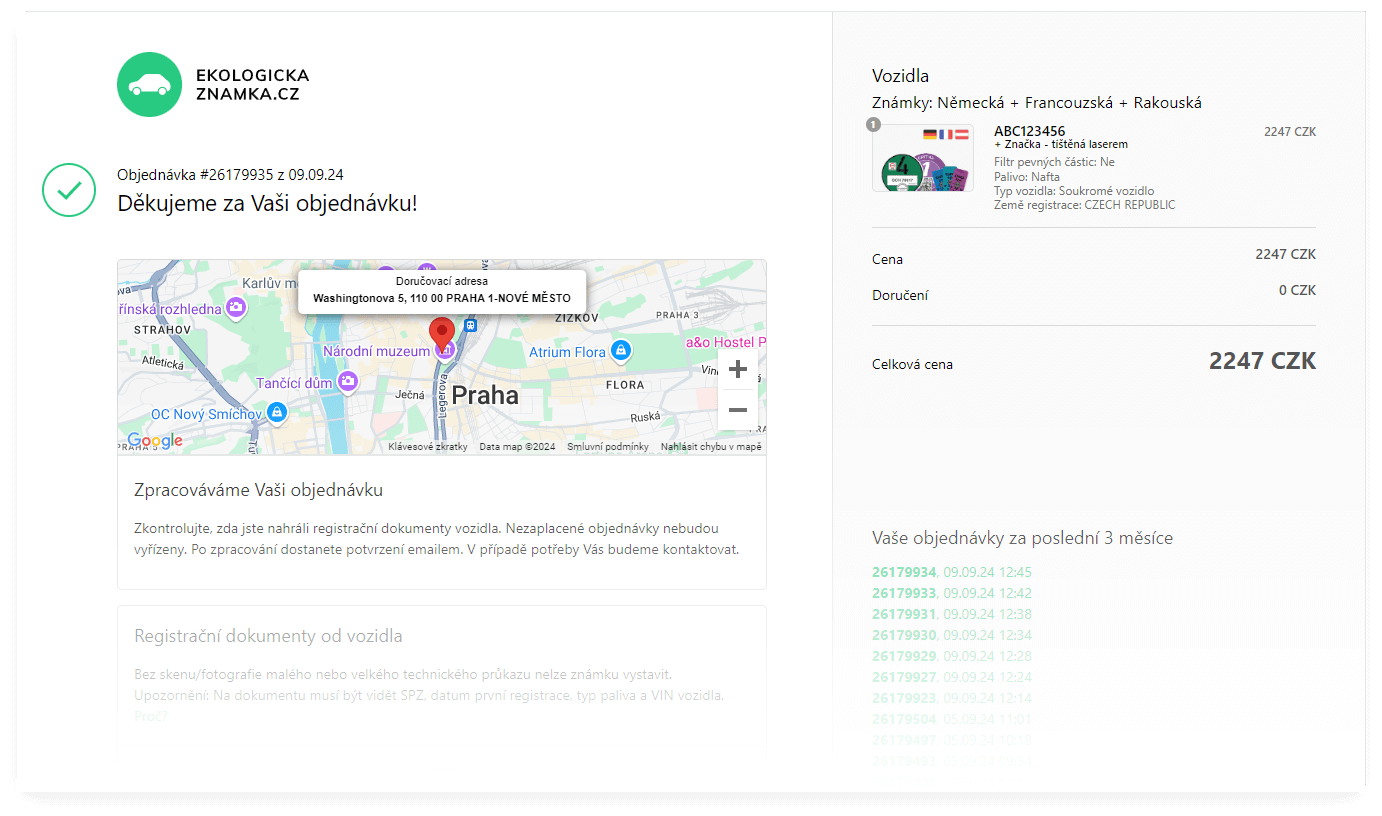 Po zpracování objednávky dostanete zprávu, že je vaše ekologická známka v tisku.