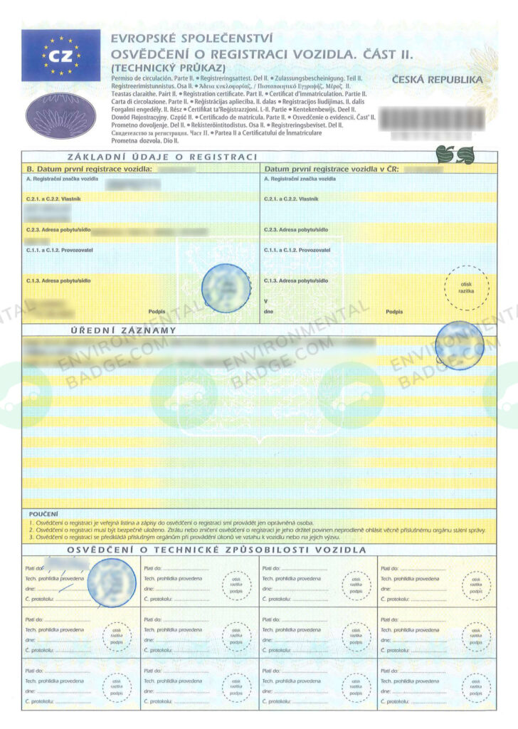 Státní předpisy vyžadují předložení dokladů o registraci vozidla pro vydání ekologické známky.
