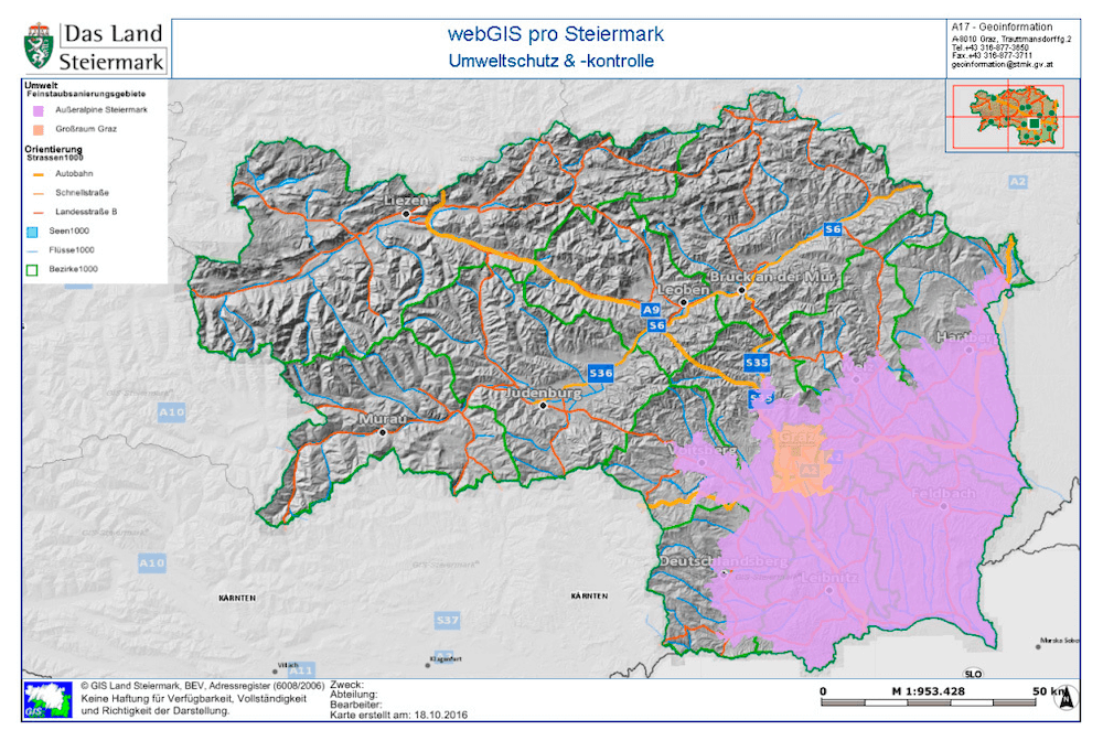 Do ekologické zóny spadají velká města Graz, Leoben či Weis, stejně jako obce a okresy Murtal, Bruck-Mürzzuschlag, Deutschlandsberg, Hartberg-Fürstenfeld, Leibnitz a Voitsberg.